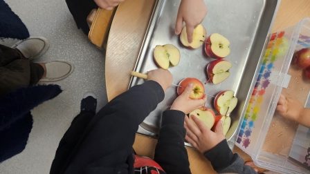 Mokėsi saugiai pjaustyti obuolius, juos ragavo žalius ir keptus – taip patyrė įvairius obuolio skonius.