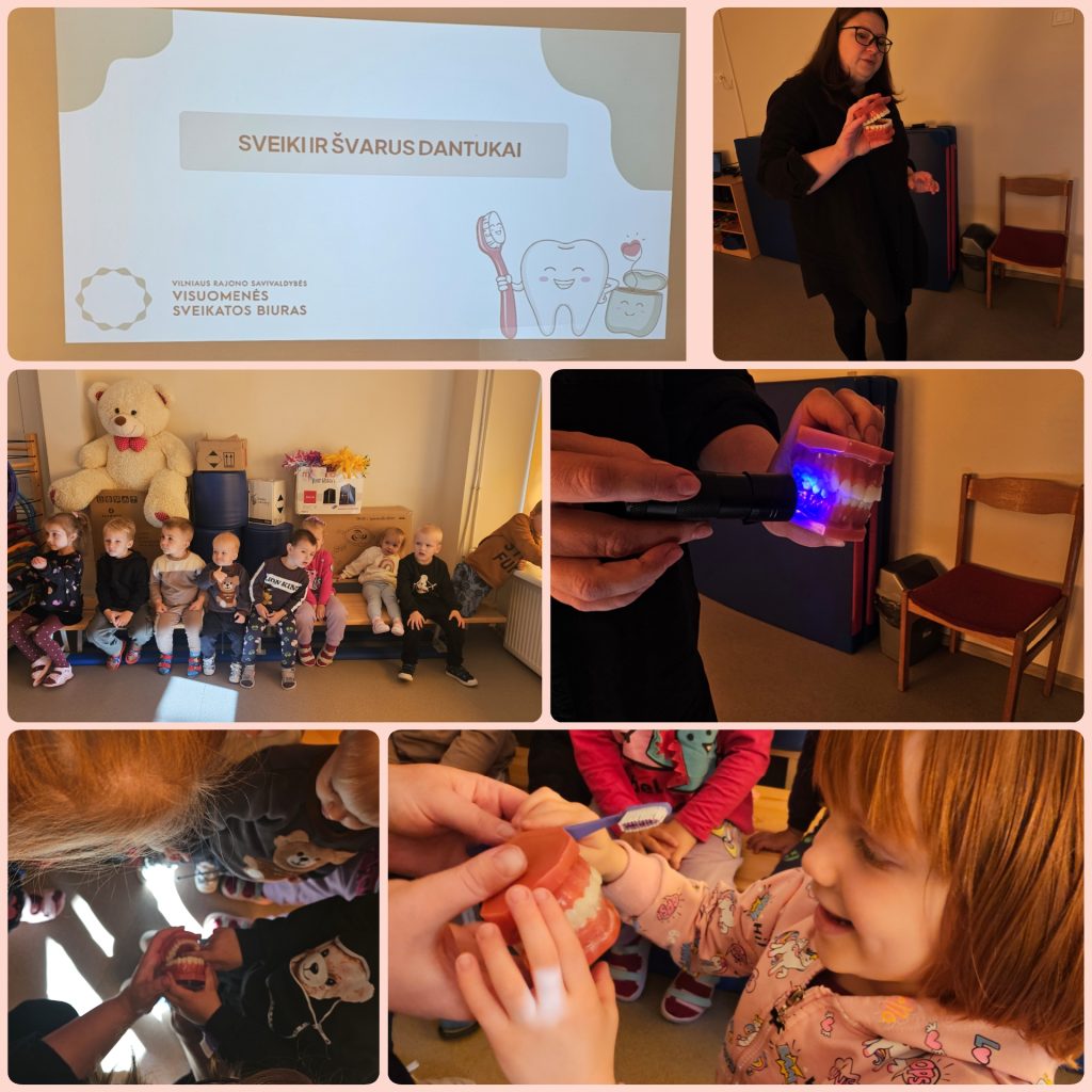 Žačkių grupės ugdytiniai klausėsi pasakojimo apie burnos higieną „Sveiki ir švarūs dantukai“, o Daigelių grupės vaikai sužinojo daug naudingos informacijos tema „Švarios rankos ir saugus maistas“.