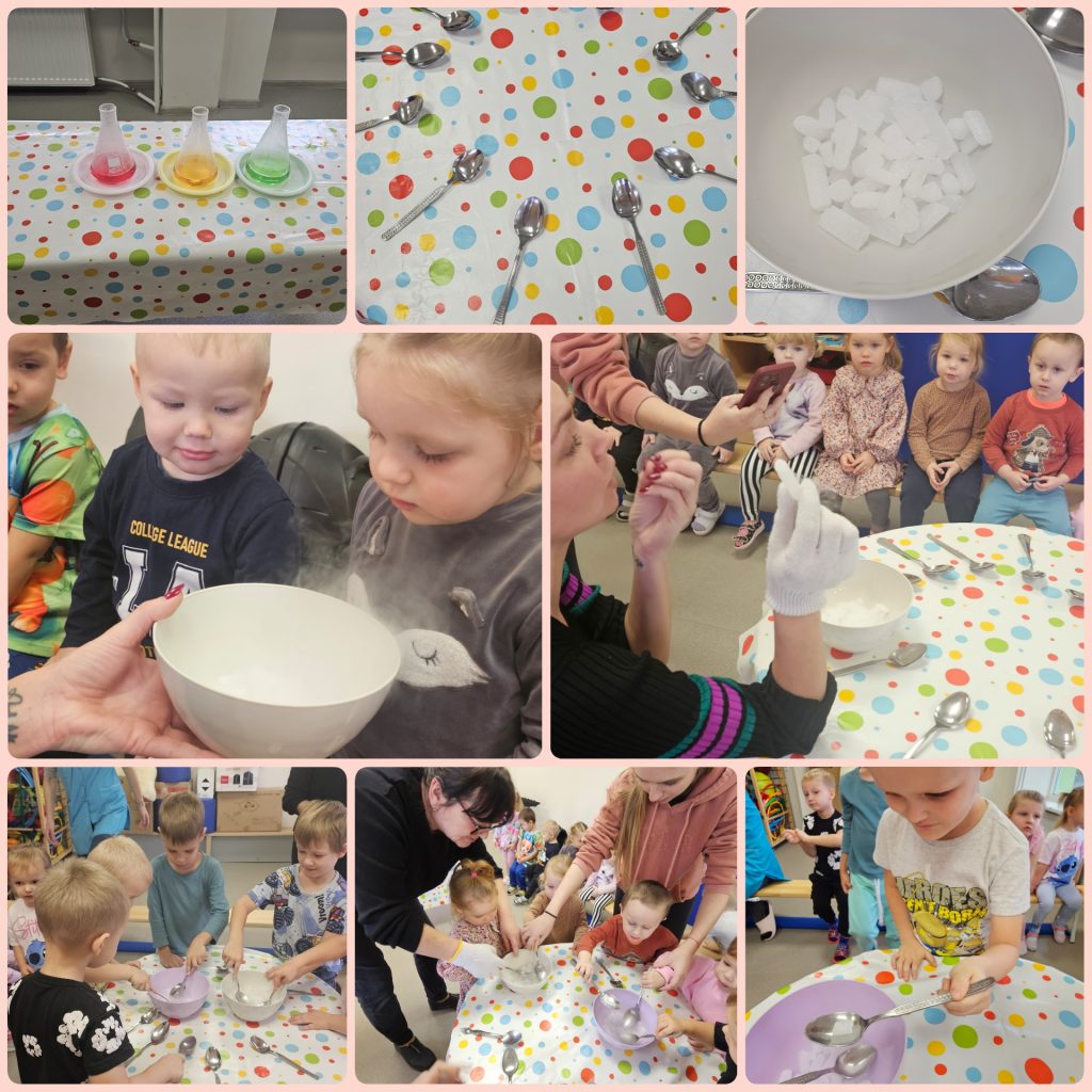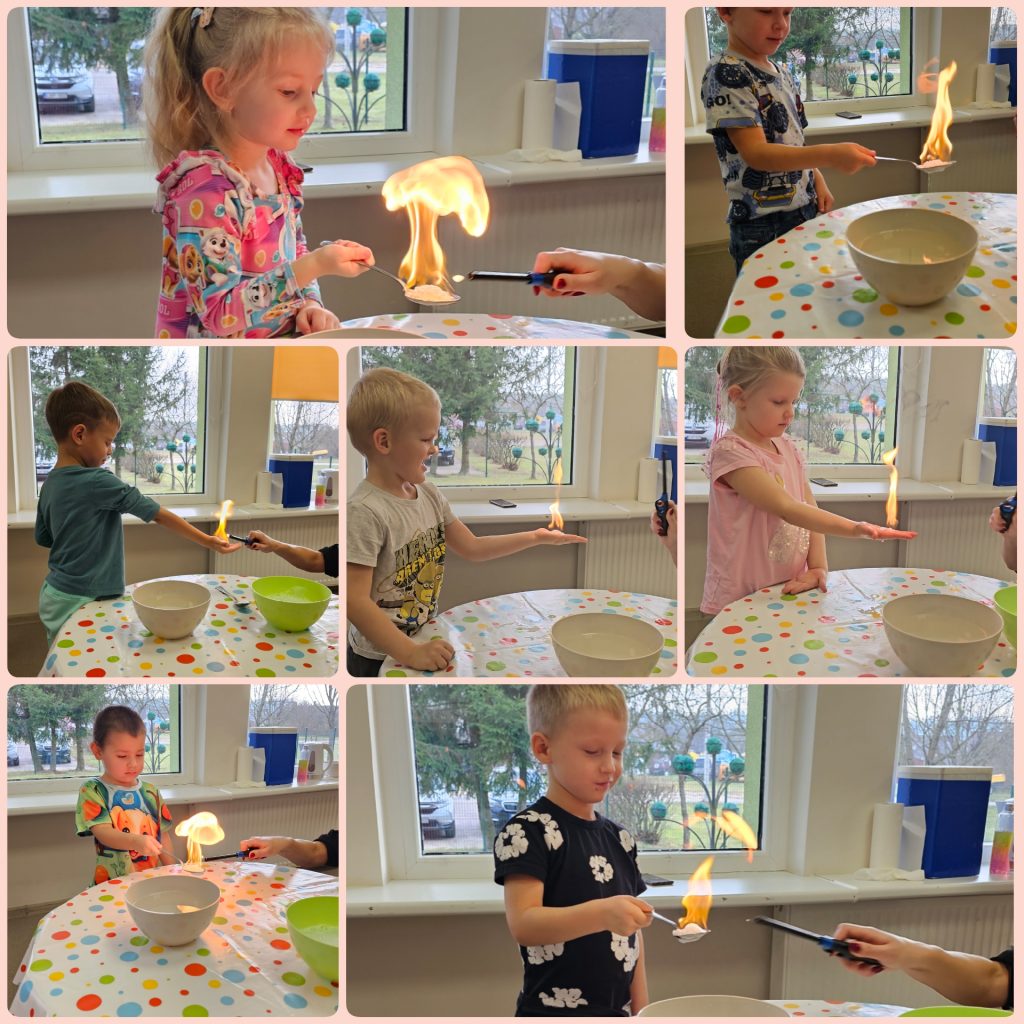 Šiandien mūsų darželyje viešėjo nuostabios edukatorės, kurios vaikams pristatė įtraukią ir smagią edukaciją apie ledą ir ugnį. Užsiėmimo metu mažieji tyrinėtojai ne tik klausėsi pasakojimų, bet ir patys aktyviai eksperimentavo. Vaikai sužinojo, kad ledas gali būti įvairus: paprastas (iš vandens užšaldytas ledas), kuris šyla ir tirpsta, ir sausasis ledas, kurio temperatūra siekia net –80 °C! Edukatorė paaiškino, kad dėl tokio šalčio juo galima net nusideginti, todėl su juo elgtis reikia atsargiai. Mažieji dalyviai atliko daug įdomių bandymų: tyrinėjo ledą, vandenį ir muilą, ragavo vandens garus, prisotintus burbuliukais, „maudėsi“ lengvuose garuose, klausiesi iš ledo išgautos muzikos, stebėjo ir išbandė saugius eksperimentus su ugnimi. Drąsiausieji net laikė liepsnelę rankose, kiti – ant šaukštelio. Vaikai buvo sužavėti, o edukacija prabėgo akimirksniu. Tai buvo kupina atradimų, emocijų ir smalsumo diena, kuri dar ilgai išliks vaikų prisiminimuose.
