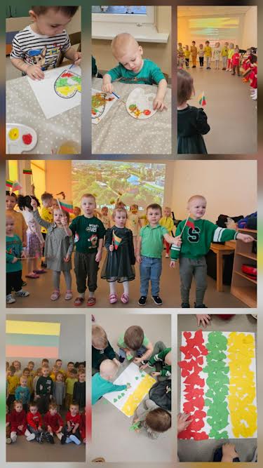 Vasario 16-oji – ypatinga diena kiekvienam lietuviui. Šią svarbią datą paminėjome ir mūsų darželyje, ugdydami vaikų pilietiškumą, tautiškumą bei meilę savo šaliai. Šventinis rytas prasidėjo iškilmingai – darželio salė pasipuošė trispalvėmis, vaikų kurtomis dekoracijomis bei Lietuvos simbolika. Renginio metu vaikai susipažino su Lietuvos istorija, sužinojo, kodėl ši diena yra tokia reikšminga mūsų tautai. Skambėjo Lietuvos himnas, kurį visi – tiek vaikai, tiek pedagogai – giedojo su pagarba ir susikaupimu. Vaikai deklamavo eilėraščius apie Lietuvą, dainavo lietuvių liaudies dainas, šoko ratelius. Kiekvienos grupės pasirodymai buvo kupini nuoširdumo, džiaugsmo ir pasididžiavimo savo šalimi. Renginio metu kalbėjome apie Lietuvos simbolius – vėliavą, herbą, sostinę Vilnių, taip pat apie tai, ką reiškia būti savo šalies piliečiu. Šventę vainikavo bendra kūrybinė veikla – vaikai iš mažų širdelių sudėliojo Lietuvos vėliavą. Tai buvo jauki, prasminga ir bendruomeniška šventė, leidusi dar kartą pajusti vienybės ir pasididžiavimo savo šalimi jausmą. Džiaugiamės galėdami nuo mažens ugdyti vaikų pilietines vertybes ir puoselėti meilę Lietuvai.